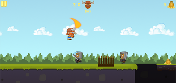This is a casual side scrolling game, where the player controls a clumsy Vicking who consider himself the King of pillages.